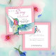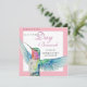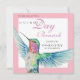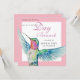 Un colibrí acuarela pintado a mano increíblemente detallado en una hermosa y artística invitación al brunch del día de la madre con un borde de acento subió