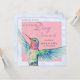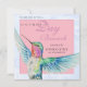Un colibrí acuarela pintado a mano con detalles sorprendentes en una bella y artística invitación al brunch del día de la madre con acentos de color rosa y un borde de nubes celestiales pintadas a mano