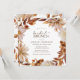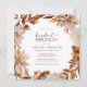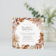 Invitación elegante a Brunch de Boda Otoñal. Estas elegantes invitaciones cuadradas para brunch de boda presentan hojas de color naranja quemado y terracota pintadas a mano con acuarela, dahlias crema y beige, y hermosas rosas de color óxido sobre un fondo blanco. Encuentre artículos coincidentes en la Colección Romance de Otoño Blanco.