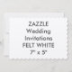 Invitaciones de matrimonio de personalizado personalizado SENTIDO BLANCO - 7" x 5" BORDES ESCALLADOS. Un papel brillante brillante y grueso de terciopelo con un acabado trenzado grabado en relieve. Diseñado con un ambiente aterciopelado y un brillante color blanco. Fabricado 100% con energía eólica. MADE IN THE USA de Mohawk - comprometido con el medio ambiente. Tarjeta de 110 lb, 16,6 puntos de grosor. El gran volumen compra ahorros de descuento de varias compras en tarjetas de invitación, hasta un 50% de descuento en sus compras por múltiples pedidos de artículos. Invitaciones a la boda de Zazzle - Cree, haga, diseñe sus propias invitaciones de boda personalizadas a partir de esta plantilla de diseño de tarjeta de invitación Zazzle totalmente personalizable y personalizada en blanco. Impresión de gran calidad, a todo color y a todo color en ambos lados con opciones de impresión Standard o de alta definición. Opciones de tamaño: 5" x 7", 4,25" x 5,5", 3,5" x 5", 4" x 9,25", 5,25" x 5,25", 4,5" x 6,25", 5,5" x 7,5", 6,5" x 8,75". Opciones de orientación: vertical (retrato) u horizontal (paisaje). Opciones de acabado: Semi-gloss, Matte, Ultra-grueso, Laid, Linen, Columned, Felt White, Felt Ecru, Kraft, Pearl Shimmer, Champagne Shimmer y Metallic Silver. Opciones de forma y estilo de la tarjeta: Esquinas estándar o redondeadas (todos los tamaños); Soporte, Vieira, Billete o Etiqueta (sólo 5" x 7"); Circular (sólo 5,25"). Se incluyen sobres blancos estándar, con opciones de actualización. Perfecto para invitaciones de boda, soltera, ducha de novia, cena de ensayo, guardar la fecha, etc., y para cualquier invitación de fiesta de RSVP, como aniversario, cumpleaños, dulces dieciséis y Quincenera; o para eventos corporativos e invitaciones de exposición - para fotos, imágenes, texto, novia y novio, o tu propia creación de diseño personalizado.