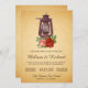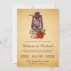 Sorprenda a sus invitados con esta elegante invitación a la boda, que incluye una hermosa lámpara antigua con flores añejas sobre un fondo de pergamino. Simplemente agregue los detalles de su evento en esta plantilla fácil de usar para convertirla en una invitación única.
