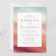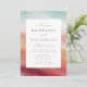 Elegantes y modernas invitaciones a bodas con detalles bodas en burdeos con un fondo acuático abstracto en tonos de agua, rosa, coral, naranja y borgoña. La invitación se revierte a un fondo burdeos sólido o color de su elección.