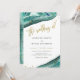 Estas elegantes y modernas invitaciones nupciales cuentan con piedras geolocales verde azuladas de acuarela, con una tipografía de oro falsa y salpicaduras.