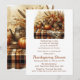 Esta invitación a la cena de Acción de Gracias muestra una ilustración de acuarela de un ambiente de mesa otoñal, completo con un centro de mesa de cosecha sobre un mantel de tartán. La obra de arte otoñal crea una atmósfera cálida y acogedora. Personalice esta plantilla con los detalles específicos de su Acción de Gracias. Es una excelente opción para reuniones de familiares y amigos. Arte generado por IA con dirección de diseño de Susang6.