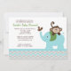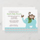 Apreciable invitación de monos y elefantes azules para su próxima ducha de bebé o fiesta de cumpleaños. ¡Hay artículos coincidentes disponibles!