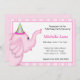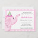 Invitación de cumpleaños de elefantes rosados con un elefante con un gorra fiesta rosado. Gran invitación para un chica.