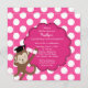 Muy linda Graduación de Kindergarten con un adorable mono pequeño en una gorra con un diploma puesto en un fondo de puntos de polka rosa y blanco. Personalice la información de su fiesta y estará listo para irse. Notas de agradecimiento, pegatinas y franqueo disponibles en nuestra tienda www.celebrateitinvites.com ©Cocoa Studio