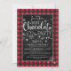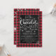 Invitación a la fiesta de chocolate caliente con copos de nieve y cuadros de Buffalo - Esta invitación presenta cuadros de Buffalo y copos de nieve con una divertida tipografía moderna. El reverso de la invitación presenta grandes copos de nieve sobre cuadros de Buffalo... ¡No puede ser más acogedor! Personalice con sus propias palabras y detalles. Para una personalización adicional: (1) Por favor, haga clic en el botón "Personalizar" y use nuestras herramientas de diseño para modificar esta plantilla. No todos los diseños se pueden modificar. (2) Si prefiere papeles más gruesos, puede considerar elegir el tipo de papel mate.