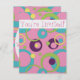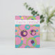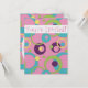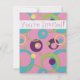 Un fondo rosa brillante está adornado con un patrón divertido de círculos, puntos y anillos en una variedad de colores vibrantes, como azul, verde, púrpura y amarillo.