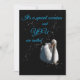 Elegante invitación personalizada con un cisne blanco sobre fondo negro.