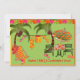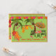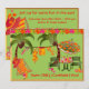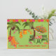 Invitación de fiesta de cócteles de BBQ para adultos con temática tropical verde, amarilla y naranja con sillas de playa, trajes de baño colgando entre dos palmeras, chanclas y copas de cóctel con sombrillas