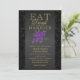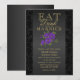 Flor Morada y Negra - Invitación de Boda "Come, Bebe y Cásate". Este producto es 100% personalizable. Se pueden agregar, eliminar, mover, cambiar de tamaño, rotar, etc. gráficos y/o texto... El 99% de mis diseños en la tienda están hechos en capas. Esto facilita cambiar el tamaño y mover los gráficos y el texto para que se ajusten perfectamente a cada producto. (Asegúrese de cambiar el tamaño o mover los gráficos si es necesario antes de ordenar) También puede "TRANSFERIR DISEÑO" a otros productos de Zazzle y ajustar el diseño para que se ajuste a la mayoría de los artículos de Zazzle. (el botón está en la parte inferior derecha de la página) Algunos de los gráficos de texto tienen casillas listas para rellenar o puede hacer clic en el botón "PERSONALIZAR" para agregar, mover, eliminar, cambiar el tamaño, el color de fondo o cambiar cualquiera de las