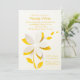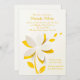 Esta invitación blanca y crujiente con una capa amarilla subyacente tiene pétalos de flores que parecen estar al borde. Perfecto para una ducha o cualquier celebración feliz.La tarjeta es fácil de personalizar con su redacción, fuente, color de fuente y elección de seis tipos de papel.