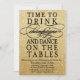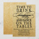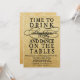 Aquí hay una invitación divertida y coqueta. Cuenta con un brillo dorado brillante con la famosa cita "Hora de Beber Champán y Bailar sobre las Mesas". Esta invitación establece un tono de "fabulosidad" para su evento.