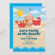 Un divertido diseño de fiesta de cumpleaños con temática de playa. Fácil de personalizar para su próxima celebración.