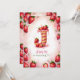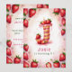 Celebra un cumpleaños especial con esta deliciosa carta de fresa "J", ¡invitación al pastel! Este encantador diseño acuático cuenta con una tarta divertida y festiva en forma de letra "J", decorada con fresas frescas, hielo rosa y una vela de cumpleaños brillante. El suave fondo rosa con fresas dispersas aporta un toque divertido. Personalice con el nombre, edad y detalles del fiesta de su hijo para una celebración de cumpleaños con temática de fresa única. Perfecto para los más pequeños que aman a los fiestas de la fruta o los cumpleaños del verano.