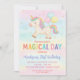 Invitación a cumpleaños de Unicornio Purpurina arc