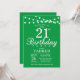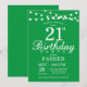 Invitación de cumpleaños 21 con String Lights. Fondo Verde. Invitar a los hombres o mujeres Lady Elegant. 13. 15. 16. 18. 20. 21. 30. 40. 50. 60. 70. 80. 90. 100. Cualquier edad.