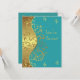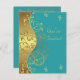 Este diseño es una invitación de cumpleaños para una mujer de cualquier edad. La imagen es un remolino de oro generado por ordenador en un fondo verde azulado. El oro en esta obra de arte es generado por computadora. No se utiliza oro real en la fabricación de este producto.