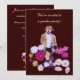 Esta caprichosa y artística invitación a la fiesta en el jardín cuenta con un místico jardinero de flores perdido en sus dahlias. Está vestido en tonos marrones, dorados, blancos y tostados y propone un gorra para la sombra, una barba y un bigote. Las flores son magenta, rosa, amarilla, lavanda y púrpura y forman un patrón abstracto girando a su alrededor. Se repite una imagen más pequeña en la parte posterior, así como toda la información pertinente. Todo el texto se puede personalizar o quitar.