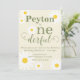 Las margaritas blancas brillantes adornan esta encantadora invitación al primer cumpleaños del bebé. Perfecta para tu niñita, esta tarjeta de colores presenta margaritas blancas con tipografía verde salada con un tema de Wild One. El dorso de la carta es verde sabio con margaritas blancas. Personalice el nombre y los detalles del fiesta. Este diseño caprichoso está disponible en artículos de fiesta de cumpleaños coincidentes.