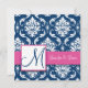 Invitación de boda con el patrón de Damasco Azul de la Marina, Monograma inicial, Nombres con Rosa frambuesa. Un diseño moderno de invitación a la boda con damasco vintage y elementos monogramados perfecto para un boda de verano. Diseño de invitación de Elke Clarke©. Gráficos con licencia de uso. Personalizar con su monograma, nombres e información de invitación a la boda. Además, elija entre una variedad de fuentes y hermosos papeles para hacer FABULOUS sus invitaciones de boda! Contáctenos para alteraciones en colores.