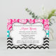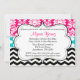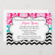 Invite a sus invitados a su Baby Shower, Bridal Shower, fiesta de cumpleaños o a cualquier evento de una manera divertida con esta invitación de moda rosa, azul y negro damasco y chevron.