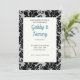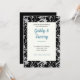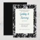 Invitación a la boda de Damasco Negro con letras negras y Verde azuladas.