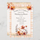 Celebre la temporada con esta Invitación de Gingham Rustic Vintage de Acción de Gracias, con un cálido fondo de gingham, marco vintage y delicados elementos de acuarela de otoño. Perfecto para invitar a sus amigos y familiares a un gran fiesta de Acción de Gracias, esta invitación rústica y elegante combina el encanto intemporal con la belleza de temporada. Personalizable total con tu mensaje personal, convirtiéndolo en un gran placer para los seres queridos.