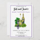 Esta invitación de degustación de vino presenta un fondo blanco y copas de vino, botellas y uvas diseñadas gráficamente. La fuente utilizada para crear esta invitación es "Gothic Medium" con texto morado y negro. Una invitación moderna para tu fiesta de degustación de vino o para otra ocasión.