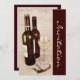 Invitación a degustación de vino rústico con botellas de vino, una copa de vino blanco y un cornudo de estilo rústico antiguo