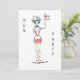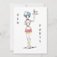 Una fotografía de una pintura original en bolígrafo/acuarela del artista inglés Terry Donnelly "Camarera". Camarera sosteniendo una bandeja de bebidas