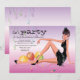 Una niña está sentada muy elegante con su pequeño vestido negro y tacones. Cintas y globos de fiesta la rodean. Está lista para la fiesta y tus invitados también lo estarán cuando reciban esta encantadora invitación.