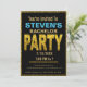 Invitación de despedida de soltero dorada. Esta invitación presenta letras doradas con un "FIESTA" en negrita con brillo y un borde brillante para agregar diversión. Nota: Este es un diseño de arte gráfico de Amelia Carrie y no contiene brillo desordenado.