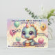 Invitación de cumpleaños a Dino Delight - Haga rugir el cumpleaños de su hijo con emoción con nuestra invitación de cumpleaños Dino Delight! Esta encantadora invitación muestra a un lindo bebé dinosaurio adornado con un pequeño gorra fiesta, agarrando alegremente un quequito en medio de un ambiente festivo de globos y confetti. El diseño suave y caprichoso captura la alegría y la maravilla de las celebraciones de la infancia. Personalizable completo, puede personalizar el texto para incluir todos los detalles de su fiesta. Ideal para fiestas con temas de dinosaurios, esta invitación seguramente entusiasmará a sus huéspedes y preparará el escenario para un evento memorable.