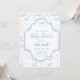 ¡Celebra a tu pequeño en el camino con nuestra encantadora invitación azul a la ducha de bebé! Esta encantadora invitación cuenta con un agradable fondo lleno de aviones lúdicos, patos dulces, osos de peluche y un clásico caballo de mecedora, perfecto para dar la bienvenida a un niño. El texto de la invitación se muestra elegantemente dentro de un sofisticado marco azul, coronado con un elegante arco azul para un toque extra de clase. Impreso con tarjetas de alta calidad, esta invitación a la ducha para bebés es ideal para los niños que duchan, los fiestas que revelan sexo o celebraciones de bienvenida para bebés. El diseño caprichoso y los tonos azules suaves crean un ambiente cálido y acogedor para su evento especial. Personalice los detalles para hacer que su ducha de bebé sea verdaderamente única.