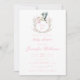 Experimente la sofisticación eterna con esta elegante invitación a bañarse en una ducha con temática vintage, con una encantadora cigüeña que lleva a una bebé en un lindo escudo y un patrón de gingham rosa para bebé en la parte trasera. Perfecto para las elegantes celebraciones clásicas de las niñas.