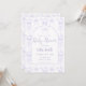 ¡Bienvenido a tu princesa pequeña con nuestra encantadora invitación a bañarse con una niña de lavanda! Esta atractiva invitación cuenta con un suave fondo violeta adornado con delicados zapatos de bailarina, encantadores carritos de bebé, osos de peluche y elegantes lirios, perfectos para celebrar a una niña en el camino. El texto de la invitación se exhibe en un marco elegante, femenino y violeta, coronado con una bonita proa morada que le da un toque de sofisticación. Impreso con material de primera calidad, esta invitación a la ducha para bebés es ideal para duchas de chica, fiestas que revelan sexo o celebraciones para bebés. El diseño caprichoso y elegante le da el tono perfecto a su evento especial. Personalice los detalles para crear una ducha de bebé única y memorable para sus seres queridos.