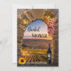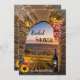Invitación a una ducha de novias con un cuadro de una puesta de sol en un viñedo enmarcado por un arco romano clásico con uvas, vino, una linterna y girasol. Tienes varias opciones para el fondo de la invitación. Utilice el editor avanzado para tener acceso a todos. Se agrega una plantilla de código QR para su comodidad. Una hermosa invitación para una celebración en un viñedo o una ducha de novia en una vinoteca.