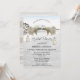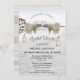 Una invitación a una ducha de novias de invierno con dos osos polares en un paisaje montañoso cubierto de nieve con linternas románticas. Al dorso hay una opción para utilizar un código QR.