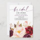 Este elegante diseño bohemio cuenta con un hermoso ramo de acuarela de flores ruidosas y burdeos y un exuberante entorno. Haga clic en el botón Personalizar y "Haga clic para más personalizares" para editar el color de la redacción del guión. Vea toda la colección para ver más elementos coincidentes.