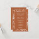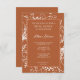 Crea una invitación única a todos los tuyos con una invitación a la ducha de novia Rust Flourish. El diseño de la invitación presenta un frondoso y elegante florecimiento con un fondo de colores que coinciden. Personalice el nombre de la novia junto con los detalles de la ducha de novia. También hay material de boda adicional disponible con este diseño.
