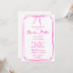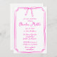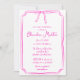 Este elegante modelo de invitación a la ducha de novia, de estilo manuscrito, presenta un diseño clásico dibujado a mano con un caprichoso ilustracion de arco en la parte superior. Se presenta en un divertido esquema de color rosa y blanco, perfecto para marcar el tono de una celebración única y femenina.