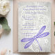 Crea una invitación única a todos los tuyos con una invitación a la ducha de novia Purple Dragonfly. El diseño de la invitación presenta una libélula vibrante contra un elegante fondo de pardo gris y vid floral. Personalice los nombres del novio y la novia junto con los detalles de la ducha de novia. También hay material de boda adicional disponible con este diseño. ¿Necesita ayuda con la personalización? Por favor, contáctame y elaboraré la redacción y los detalles para adaptarlos a su satisfacción.