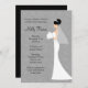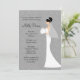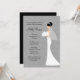 Invite a los huéspedes a una ducha de novia con estilo con esta moderna y elegante Invitación a la ducha de novia. Cuenta con una silueta de una novia vestida con un bonito vestido boda con velo y ramo. Este diseño negro, blanco y plateado es una forma elegante de invitar a los clientes a la ducha. Los ENVELOPES COINCIDENTES están disponibles para la compra a continuación