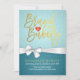 Plantillas de tarjeta de invitación para ducha de novias Brunch y Bubbly Bridal. Elegante escritura de tipografía escrita a mano en oro con cinta blanca vintage y fondo turquesa. Un diseño perfecto para tu gran día. ¡Todo el estilo de texto, colores, tamaños se pueden modificar para adaptarlo a sus necesidades!