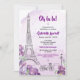 Bonjour y bienvenido a sus huéspedes con una invitación a acuarela morada perfecta para una ducha de novia con temática parisina. La Torre Eiffel está rodeada de hermosos iris violetas, con una silueta parisina en el horizonte. Disponible con productos a juego.