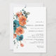 Verde azulada y quemada naranja con ducha de novia floral. Elegante acuarela florida invitación a la ducha nupcial con hermosas flores de acuarela pintadas a mano en un ramo de naranja de óxido y verde azulado oscuro perfecto para el verano y la ducha de novia otoño. Puede personalizar la redacción, el estilo de letra, el color y el tamaño delante y detrás de la invitación. Elementos coincidentes disponibles.