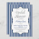 Una elegante ducha de novia azul marino y gris plateado con un marco de acento falso purpurina plateado y rayas azul marino y blanco con texto gris y azul. Esta moderna ducha de boda es una manera muy elegante de dar la bienvenida a sus invitados de la ducha para una celebración maravillosa.