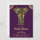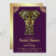 Sorprenda a sus huéspedes con esta tradicional ducha de novia con un elefante de oro falso bellamente decorado con un fondo morado. Simplemente agregue los detalles de su evento en esta plantilla fácil de usar para convertirla en una invitación única. Girar la carta para revelar una textura falsa de Relieve metalizado dorado en la parte posterior de la tarjeta.